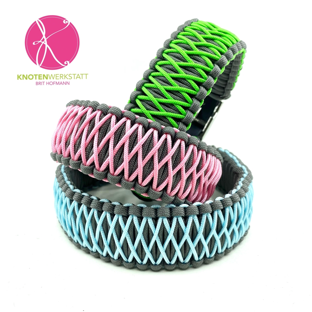 Darüber hinaus fertigen wir exklusive Paracordhalsbänder, die durch ihre aufwendigen Flechtmuster und vielfältigen Farbkombinationen begeistern – sowie edle Lederhalsbänder, die mit besonders weichem Nappaleder unterlegt sind und höchsten Tragekomfort bieten. Eine Kombination aus Stärke, Eleganz und spürbarer Qualität.